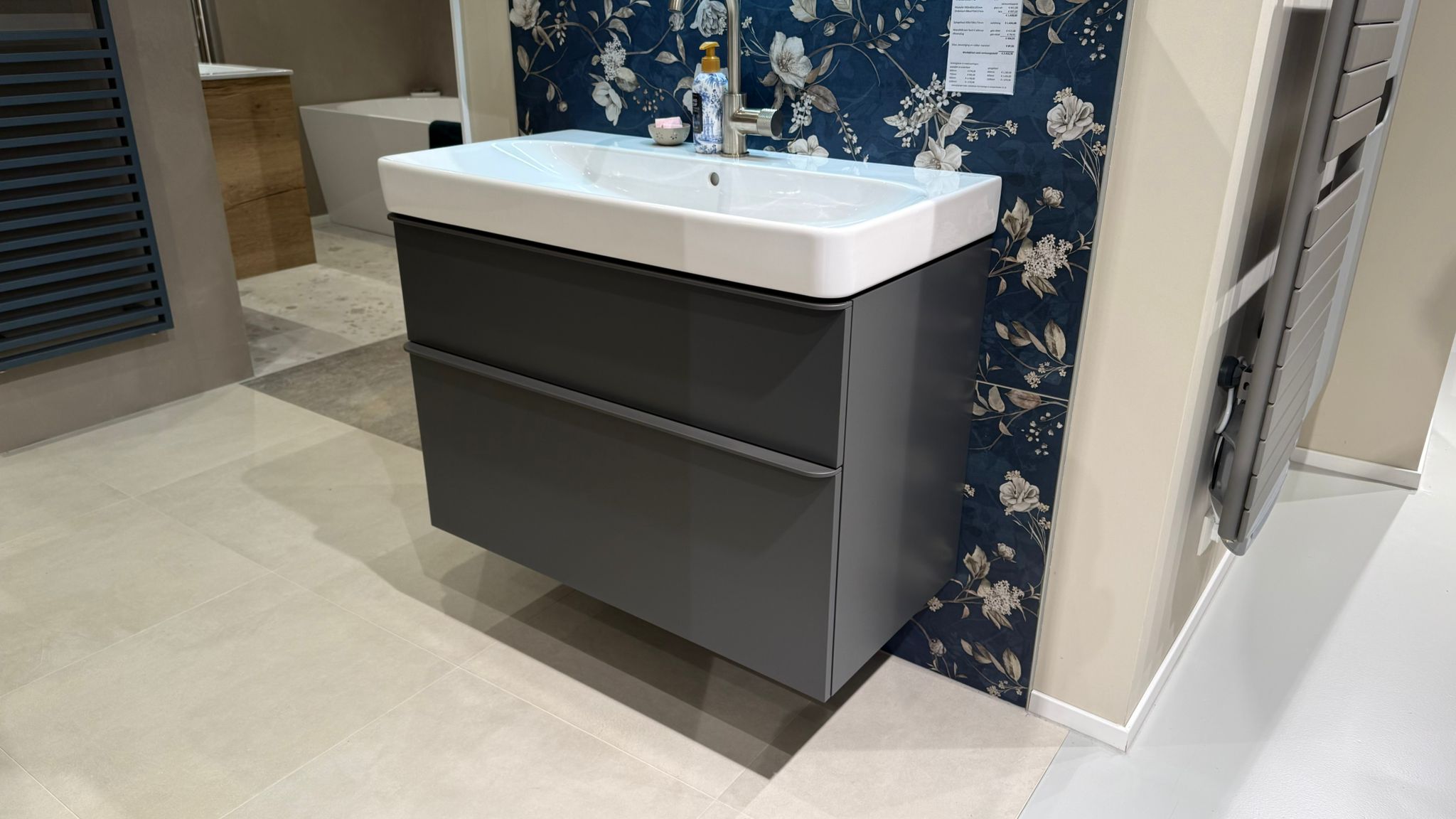 De Geberit Renova Plan wastafelset heeft een strak ontwerp met een brede onderkast voor extra opbergruimte.