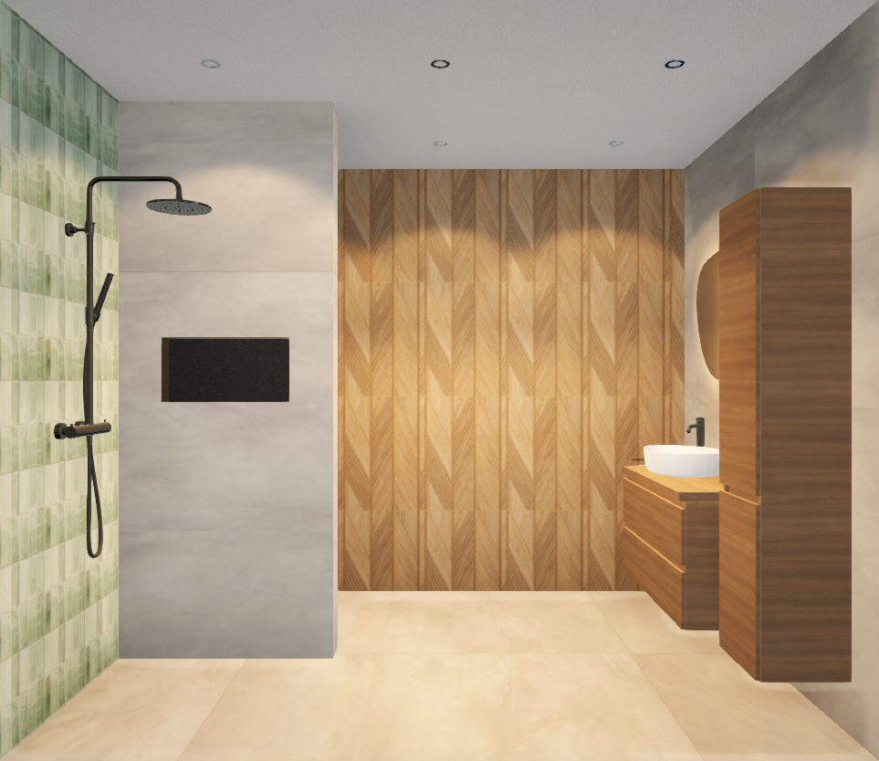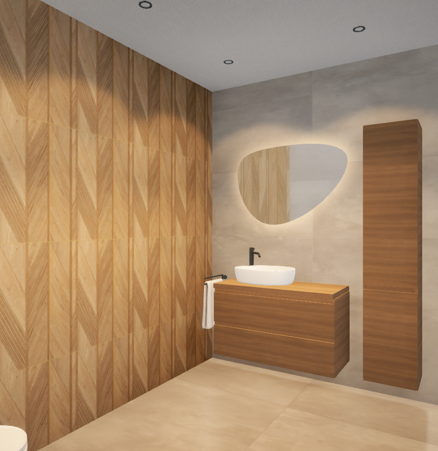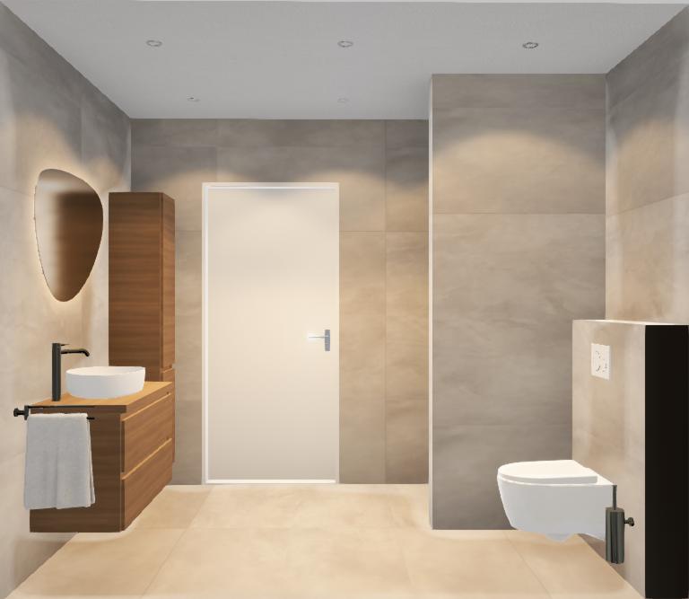 Badkameropstelling BTB 11 Elegant en ingetogen: licht tones, matte oppervlakken en lichte details zorgen ervoor dat deze badkamer rust uitstraalt, zonder concessies te doen aan stijl.